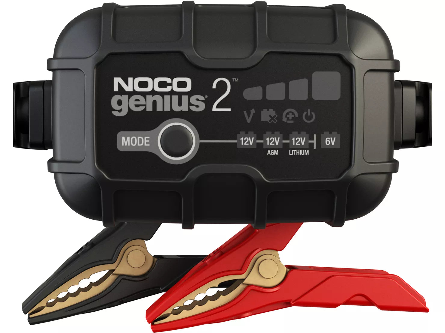 The GENIUS2 is a 6-volt and 12-volt battery charger, battery maintainer, and battery desulfator rated at 2-amps for lead-acid automotive, marine, and deep-cycle batteries, including flooded, gel, AGM, and maintenance-free, plus lithium-ion batteries.