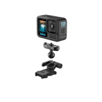 The Magnetic Latch Ball Joint Mount makes it easy to move your HERO13 Black between GoPro mounting setups so your camera can rotate and tilt to capture new angles. Magnets line up the adapter with your camera, then auto-engaging latches lock it in without thumb screws and release it with a pinch. Built tough with a metal shell, this mount is ready for action.